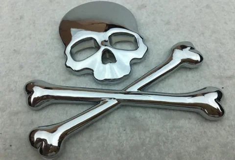 3D Chrome Metal Skull Skeleton Cross Car Trunk Rear Emblems Badge Decal Sticker