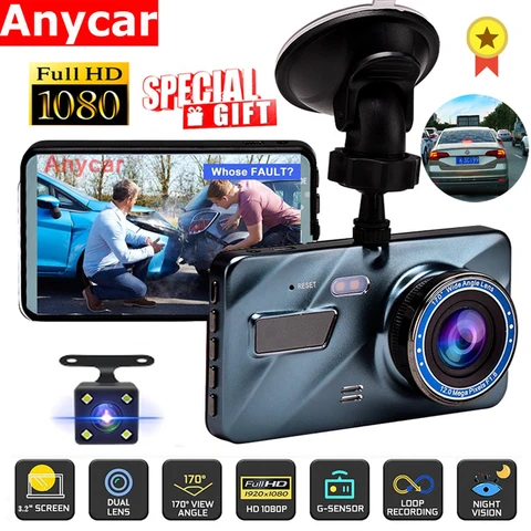 Car DVR Dashcam Video Recorder Dual Lens Camera FHD 1080P 170° Angle Night Vision Rear View Auto Camcorder Registrator Dash Cam