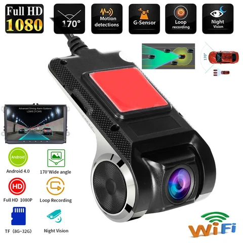 Android USB Port Car DVR Dash Camera ADAS Driving Recorder 1080P Night Vision Loop Recording G-sensor 170°Wide Angle Registrar