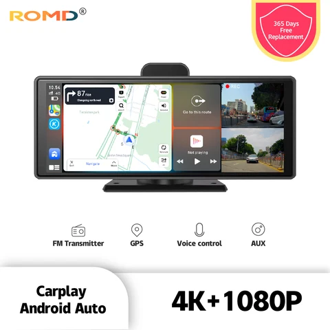 ROMD 10.26" 4K Dash Cam Rearview Camera 5G Wifi Carplay & Android Auto DVR GPS Navigation Video Recorder Dashboard Dual Len
