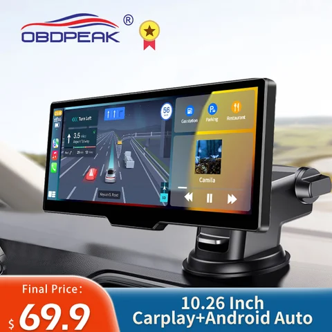 OBDPEAK T20 10.26" Dash Cam 2.5K Rearview Camera Carplay & Android Auto Smart Player GPS Navigation Car DVR FM Mirror Monitor