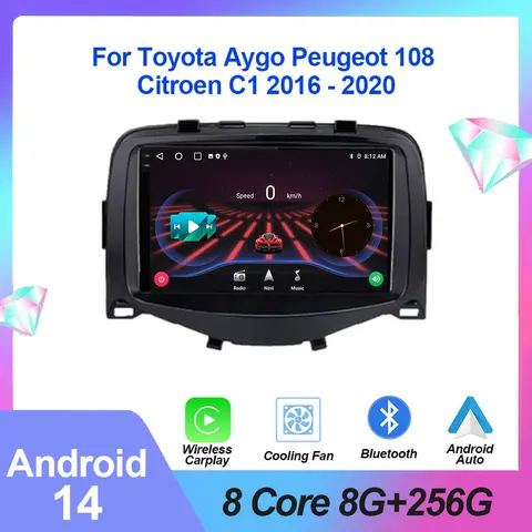 Android 14 For Toyota Aygo Peugeot 108 Citroen C1 2016 - 2020 Car Radio Multimedia GPS Navigation Carplay Auto Player DSP