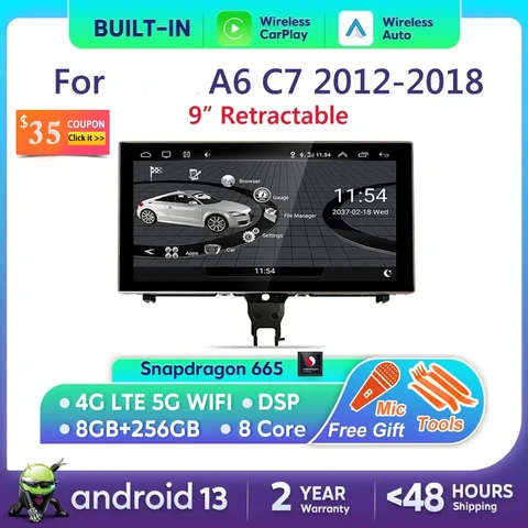 Android 14 8+256GB Car Multimedia Player For Audi A6 C7 A7 2012~2018 Touch Screen 4G Carplay Music Stereo GPS Navi Auto Radio