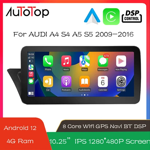 AUTOTOP 10.25" Android 12 Car Multimedia Player 2Din Headunit For Audi A4 S4 B8 A5 S5 2009-2016 Carplay DSP 4G GPS Google Wifi