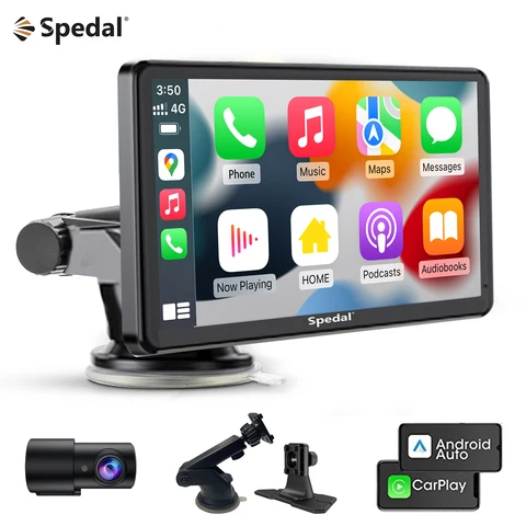 Spedal CL797 Dash Cam 7Inch Wireless Apple Carplay Android Auto Portable IPS Touchscreen with Voice Control Bluetooth AirPlay