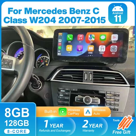 12.3" Car Multimedia Player For Mercedes Benz C Class W204 2007-2015 NTG IPS 1920*720P 8+128GB BT WIFI CarPlay Radio 4G LTE GPS