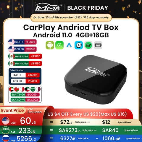 MMB CarPlay Ai TV Box Andriod 11 Wireless CarPlay Netflix Youtube Android Box Car Multimedia Video Player 4G+16G HDMI for Toyota