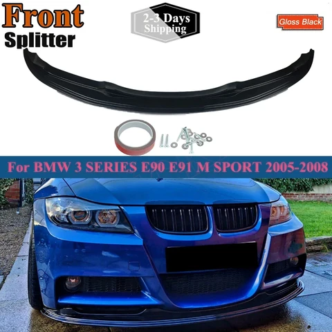 Front Spoiler Splitter For Bmw E90 Front Bumper Lip LCI E91 M Sport Style Car Lower Body Kit Vent Blade 2005-2008