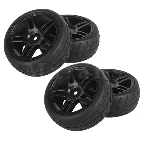 4PCS RC1/10 Black Rubber On-Road Racing Car Chequered Pattern Tires with Star Plastic Wheel Rims with Holes