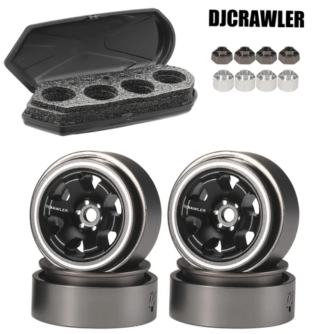 4PCS 1/24 TE37 Aluminum Alloy Weighted Wheel with Adapters for TRX4M AXIAL SCX24 FCX24 RC Car Upgrade Accessories Parts
