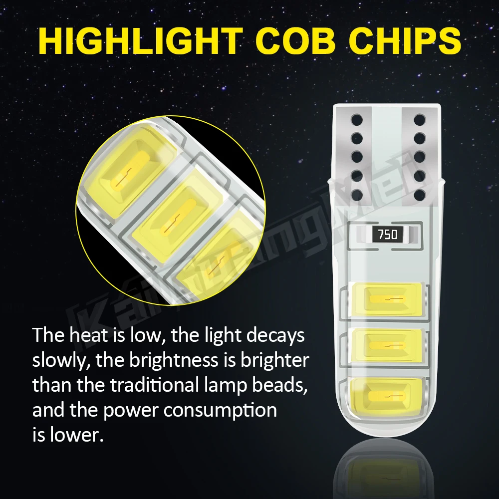 Standard T10 W5W LED wedge lamp,6-SMD,using imported COB chips, 360° beam angle design lights up every corner.