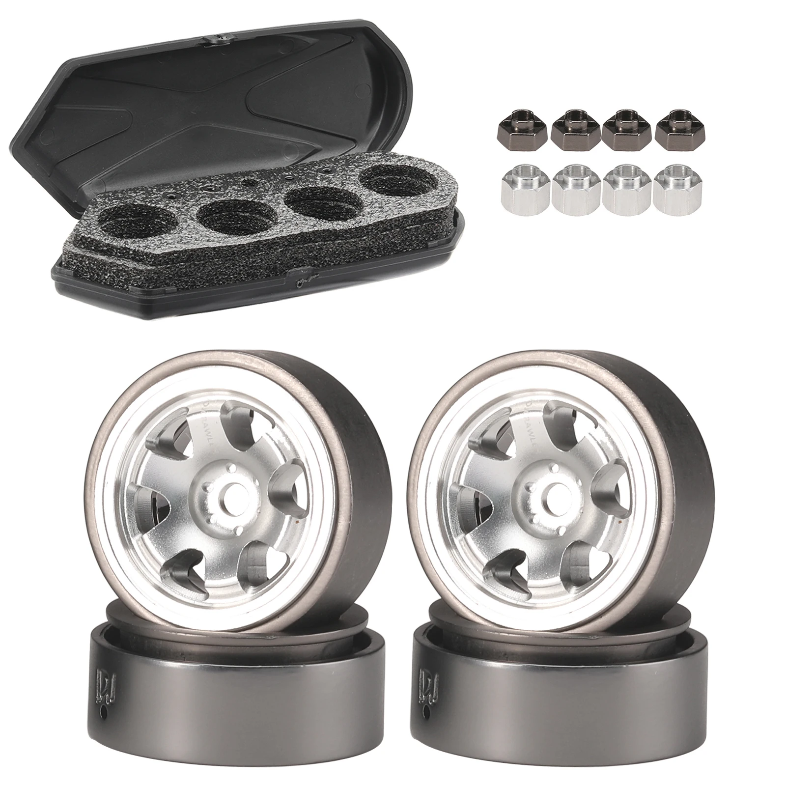 4PCS 1/24 TE37 Aluminum Alloy Weighted Wheel with Adapters for TRX4M AXIAL SCX24 FCX24 RC Car Upgrade Accessories Parts
