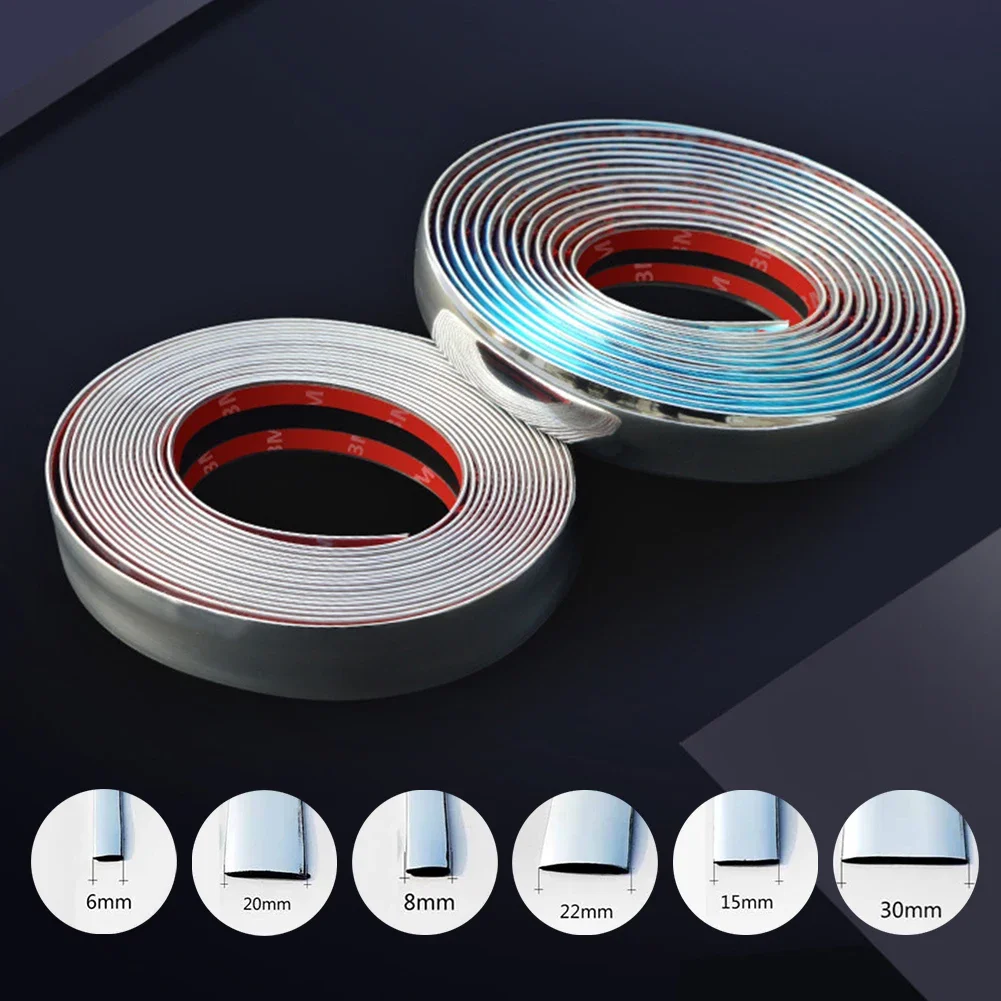 6/8/10/15/20/30mm Universal Auto Self Adhesive Side Door Chrome Strip Moulding Decoration Bumper Protector Trim Tape Car Sticker
