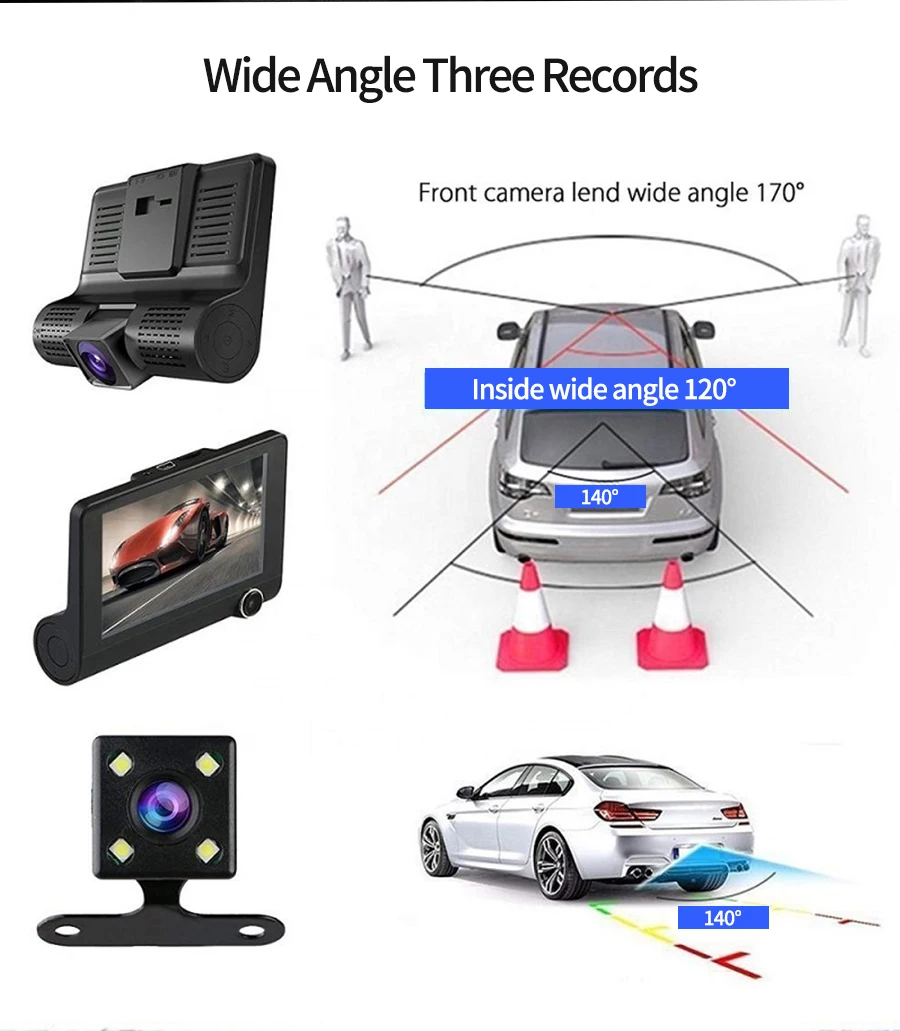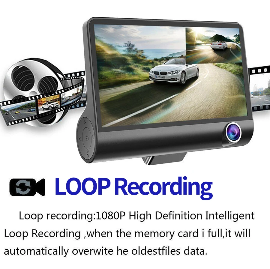 4” Three Ways Car DVR FHD 1080P Dual Lens Video Recorder With Rearview Camera Dash Cam Camcorder G-Sensor Night Vision Cardvr