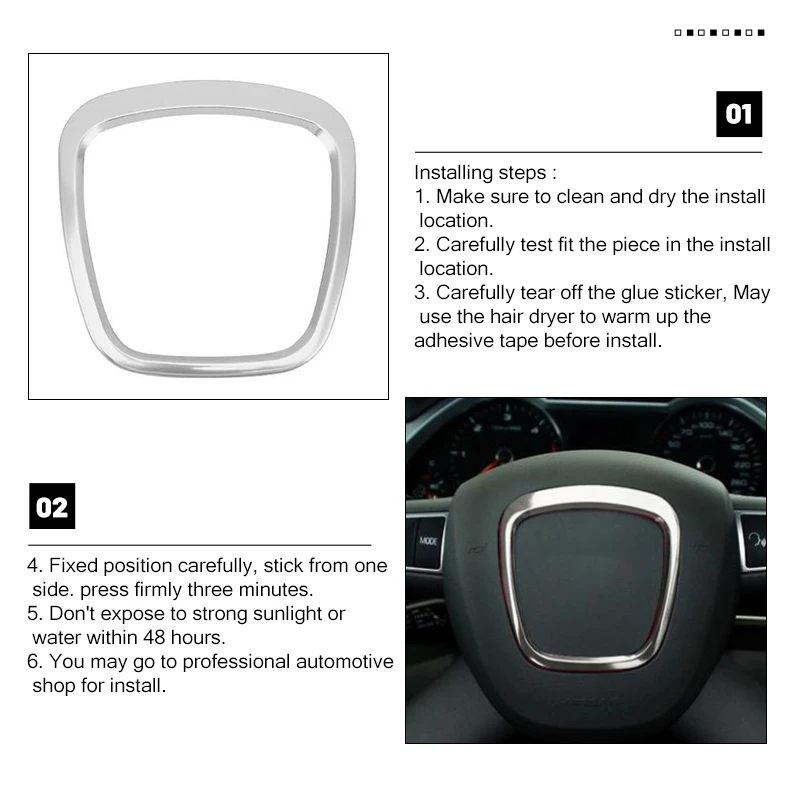 Chrome Car Steering Wheel Frame Replacement For Audi A3 8P S3 A4 B6 B7 B8 A5 A6 C6 Q7 Q5 Trim Cover Sticker