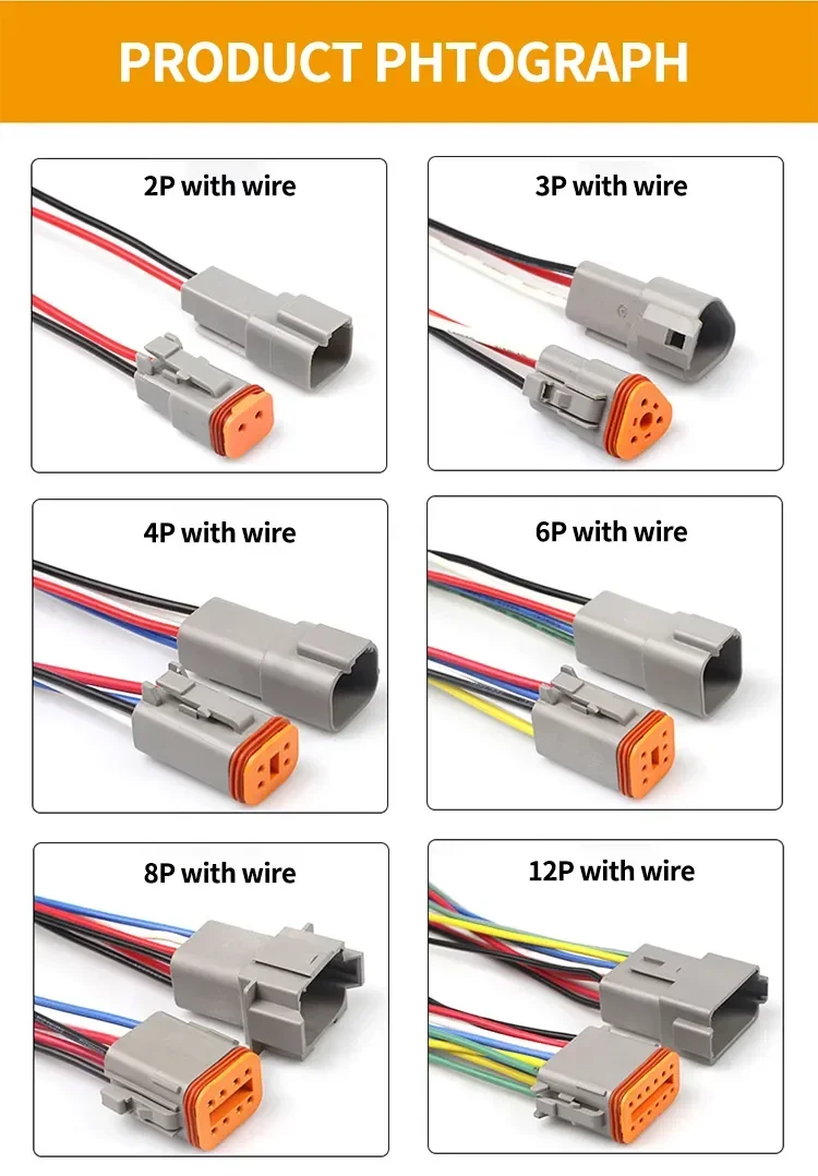 DT Waterproof Automotive Connector With 15cm Wiring DT06-2S/DT04-2P 3P 4P 6P 8P 12P Male Female Plug Socket For Automobile