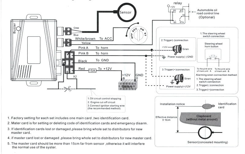 intelligent relay auto arming universal ignition fuel pump circuit connection car immobilizer one way car alarm key fobs