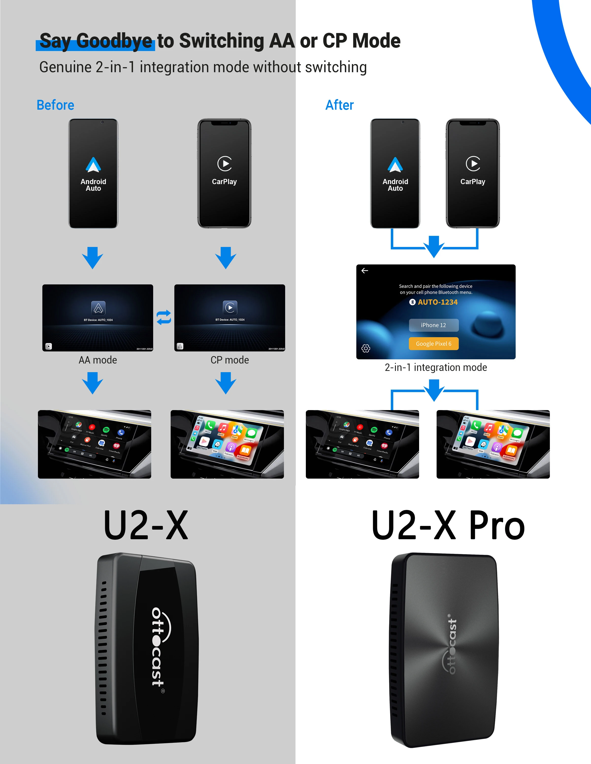 2.I’m still wondering, my car has built-in CarPlay, but no Android Auto, how does the U2-X Pro achieve wireless Android Auto?