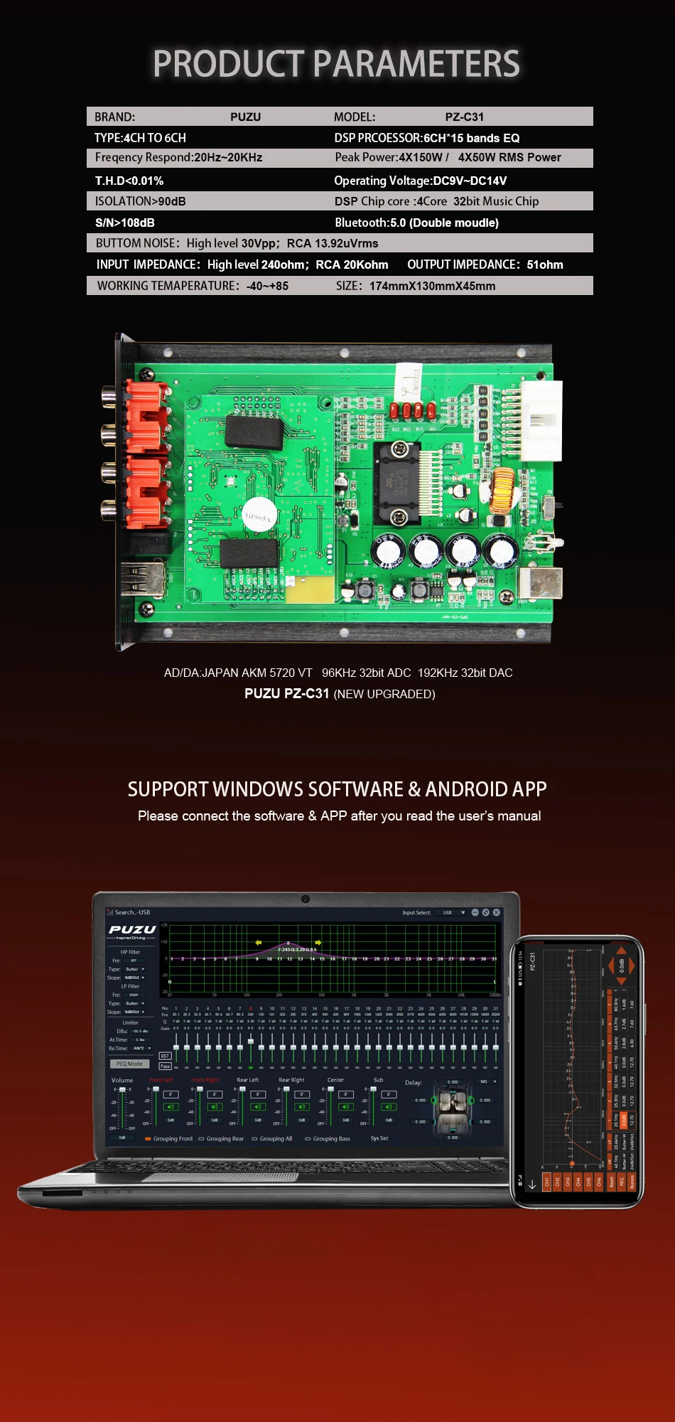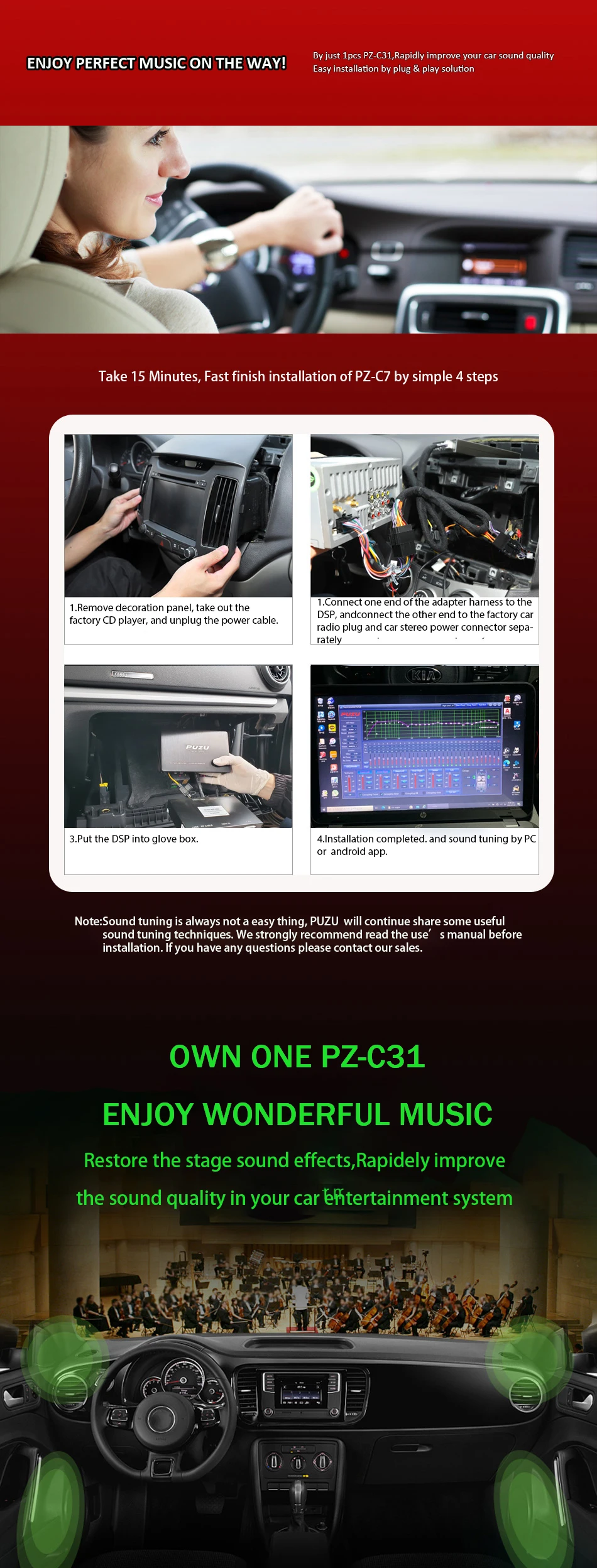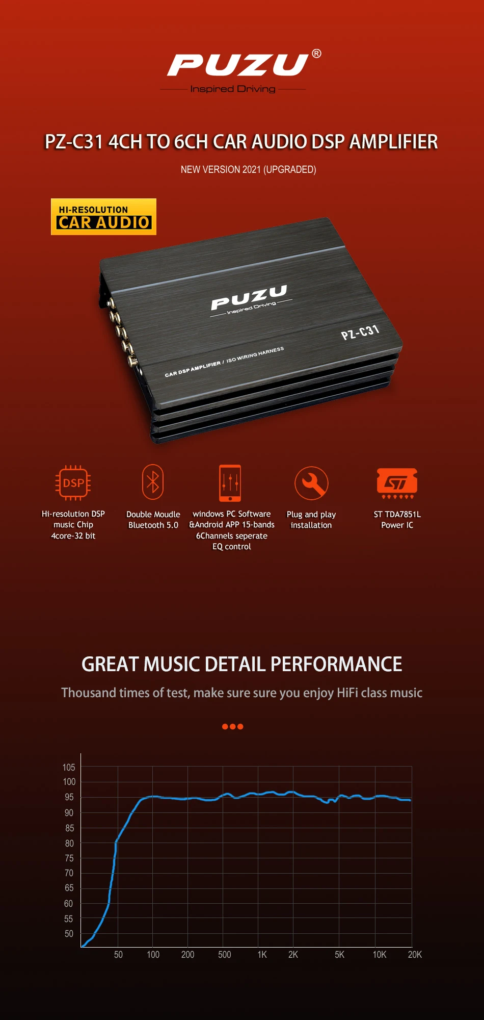 PUZU Car Audio DSP Power Amplifier 31 Section EQ 4CH In 6CH Out Audio Processor C31 for hyundai and kia etc.