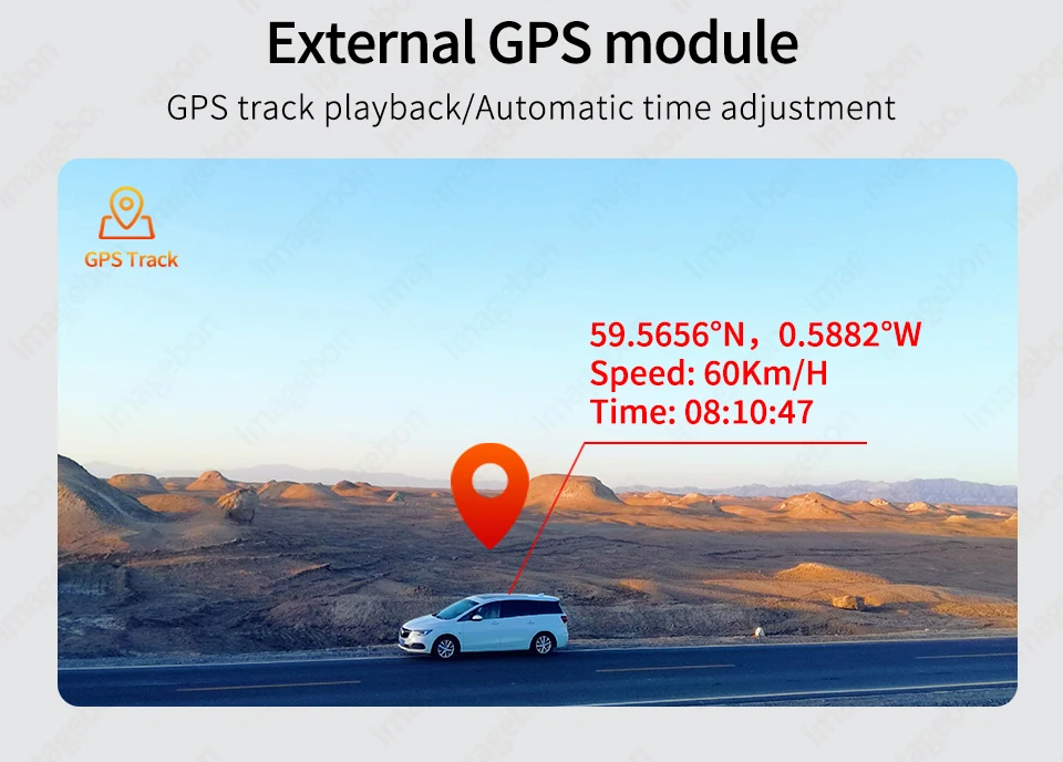 Which can automatic correct time,display the vehicle speed and record speed,coordinates, and track.Then you can check the video playback in the “Roadcam”APP.( need to choose GPS antenna set meal)