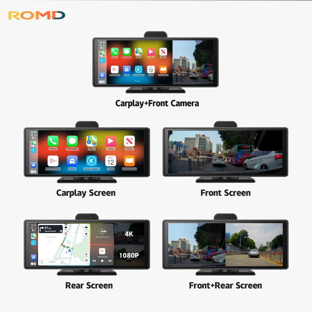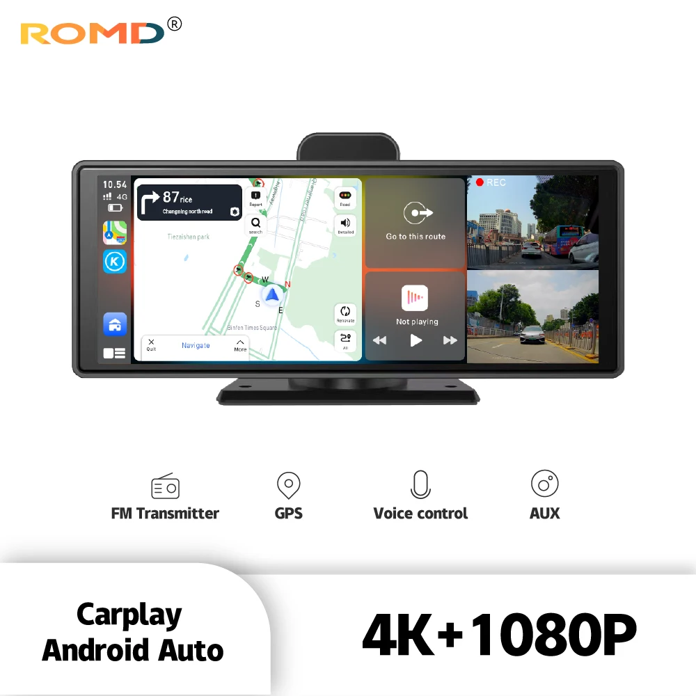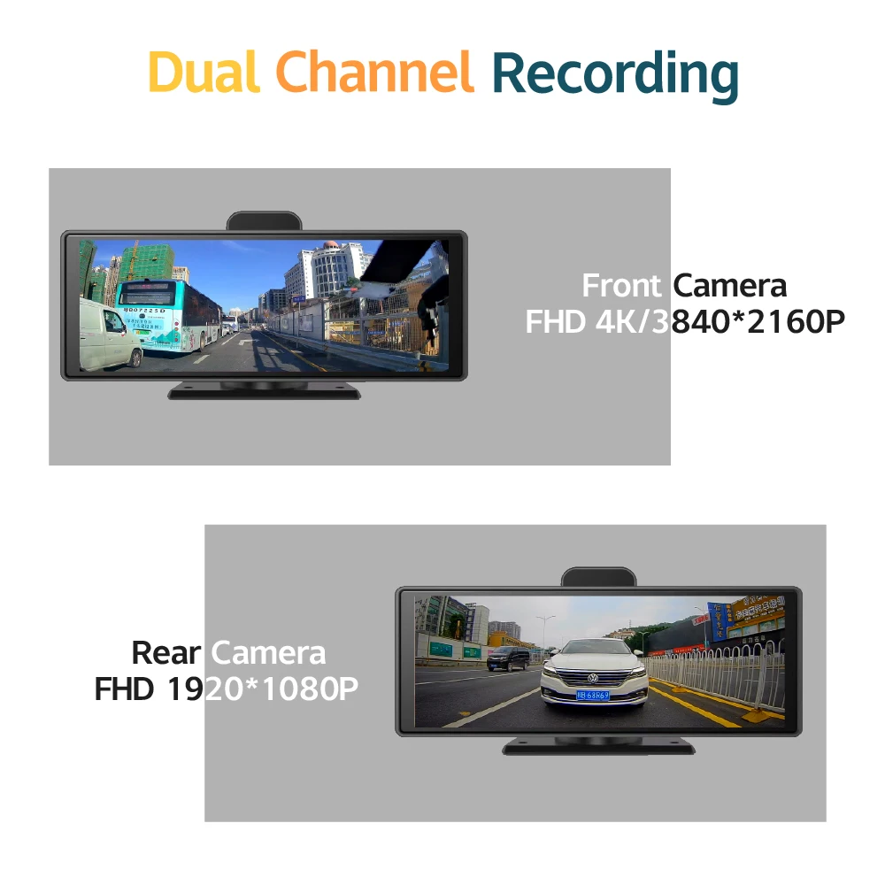ROMD 10.26" 4K Dash Cam Rearview Camera 5G Wifi Carplay & Android Auto DVR GPS Navigation Video Recorder Dashboard Dual Len