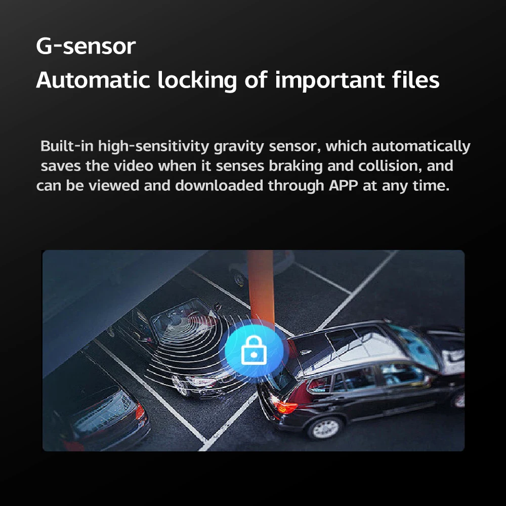 When your car is subjected to an impact or other emergency, the G sensor is triggered, so that the recorder immediately records and locks the video.