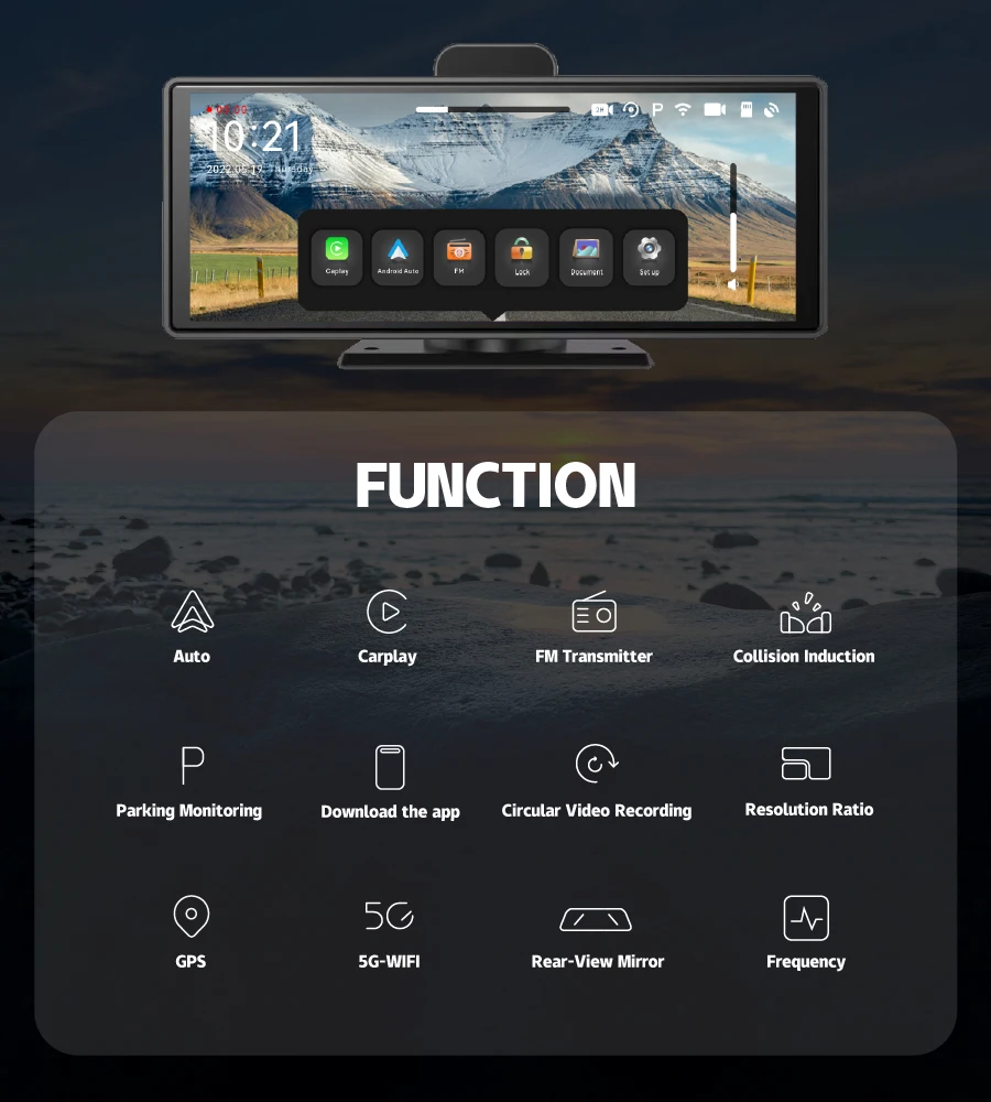 With carplay or Android auto,You can use voice to control the DASH CAM, such as playing music or making phone calls or navigation,Let driving safer and easier.