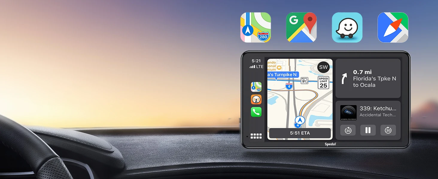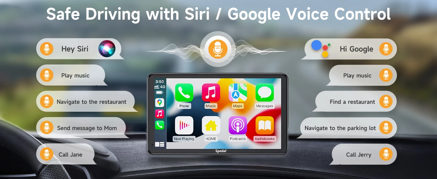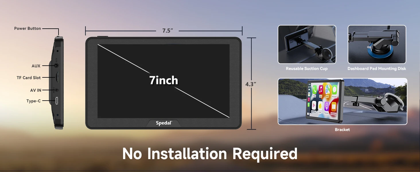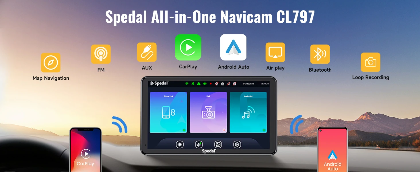 Spedal CL797 Dash Cam 7Inch Wireless Apple Carplay Android Auto Portable IPS Touchscreen with Voice Control Bluetooth AirPlay