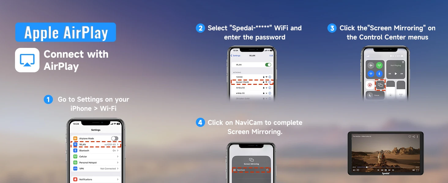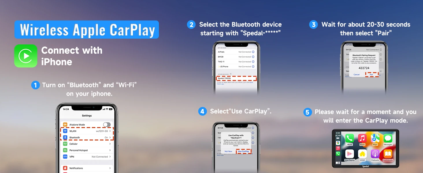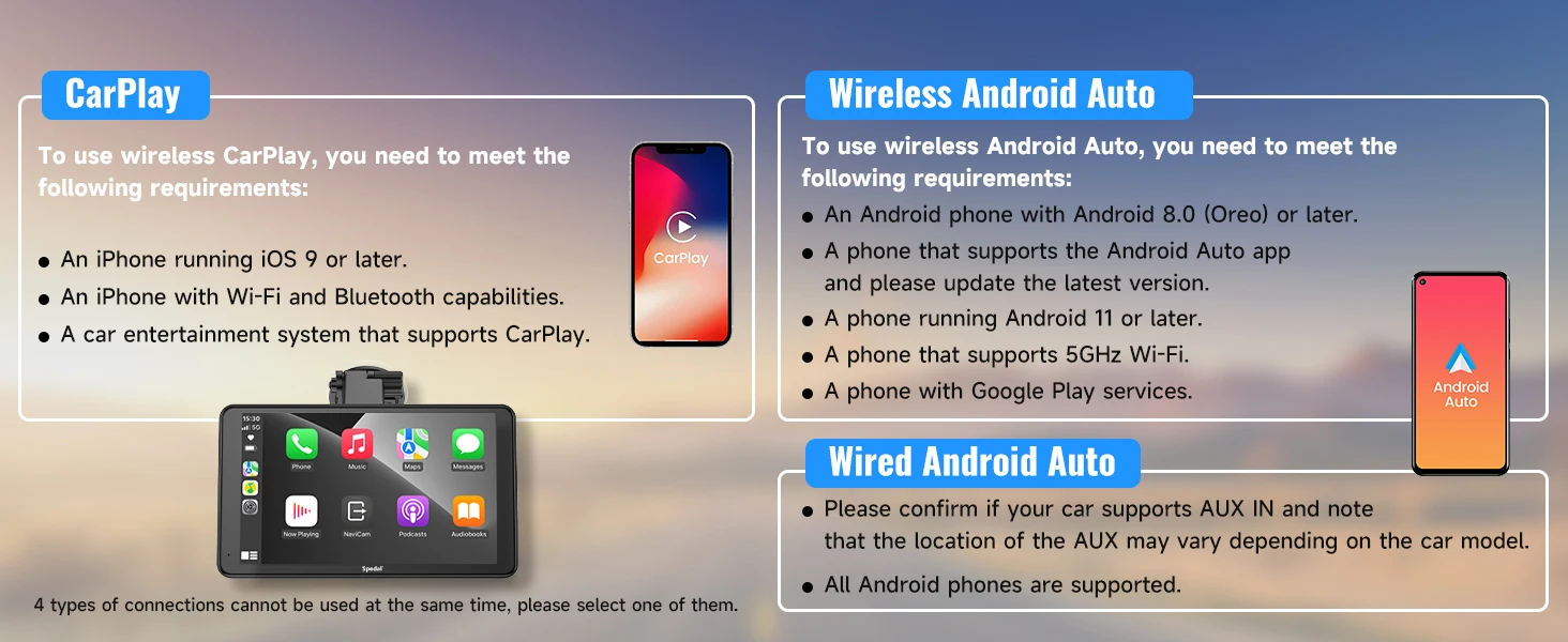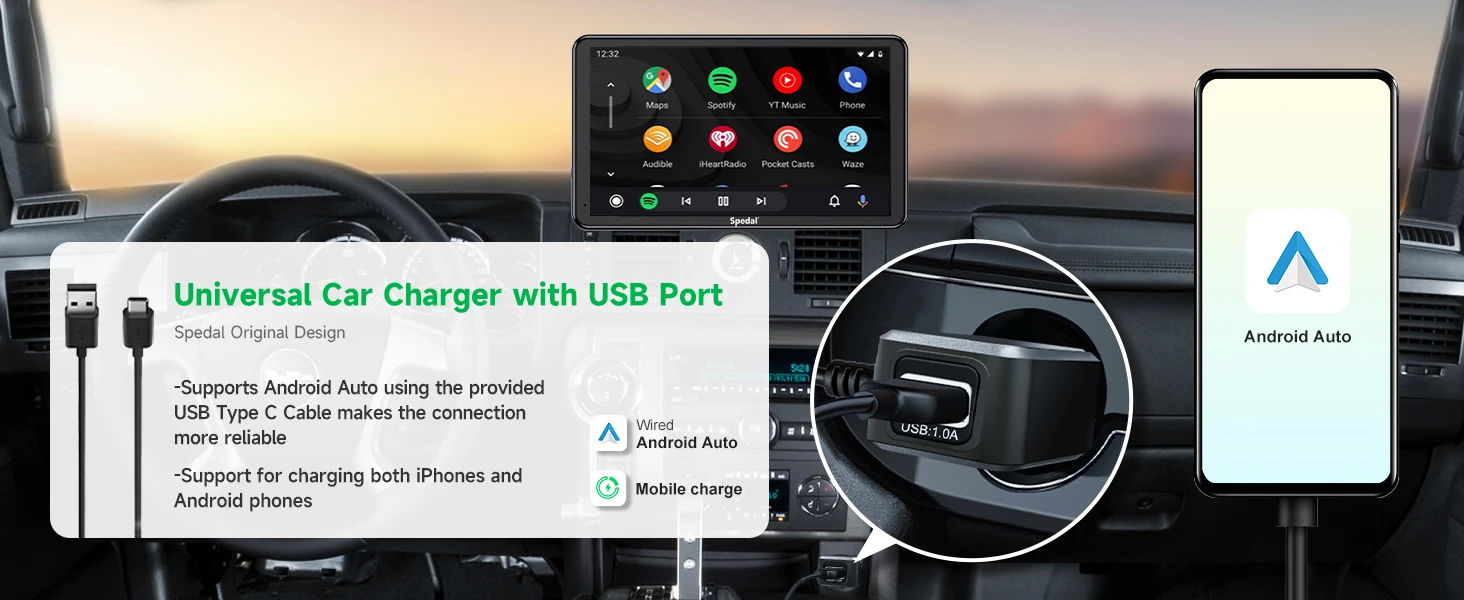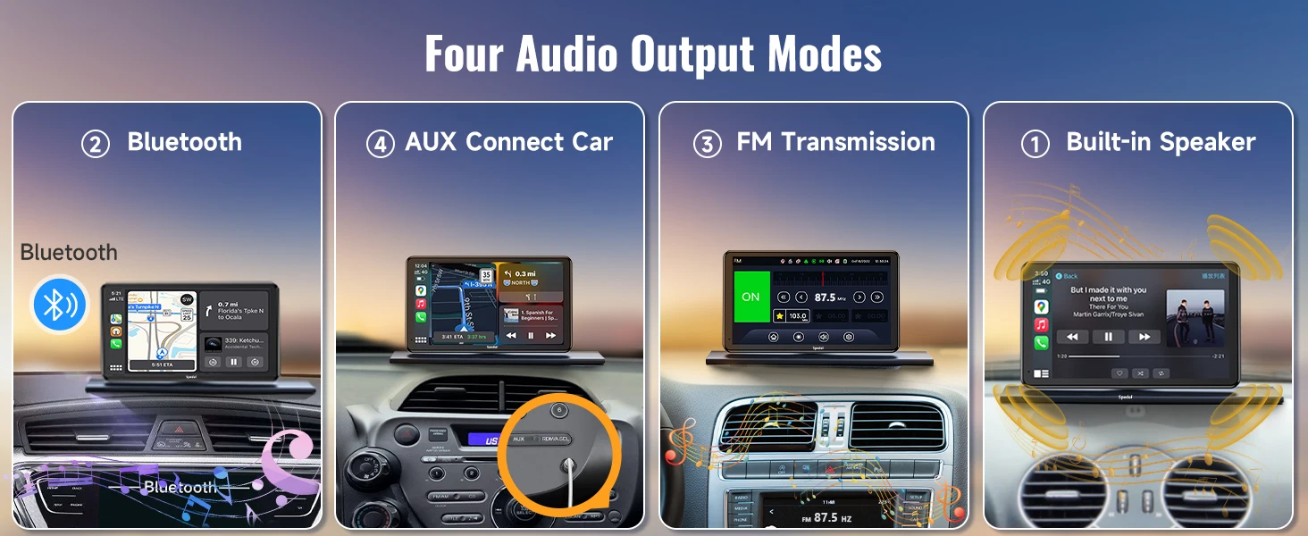 Spedal CL797 Dash Cam 7Inch Wireless Apple Carplay Android Auto Portable IPS Touchscreen with Voice Control Bluetooth AirPlay